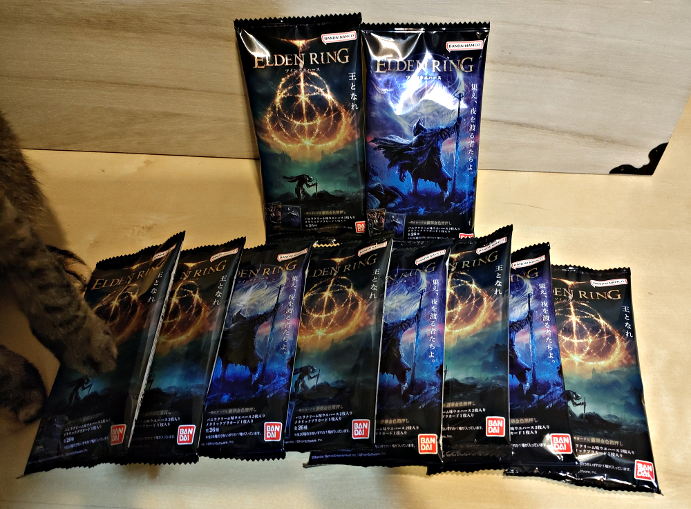 あとね、生まれて初めて自分のために食玩カード買いました。フロム・ソフトウェアの『ELDEN RING』です。